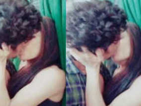 Curly boy and Desi girlfriend share a passionate kiss in potential porn video