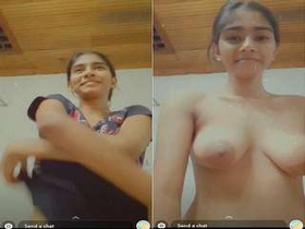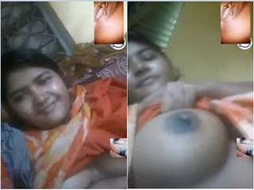 Desi babe teases with her big boobs and fingers her pussy on video call