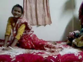 Bangladeshi wife with long hair takes a bath in the bedroom