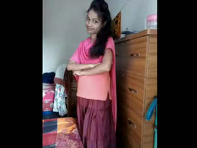 Description: In this tantalizing video, a cute and innocent-looking desi girl is seen slowly unbuttoning her dress, revealing her beautiful curves and captivating smile. The camera zooms in on her every move, making the viewer feel as if they are right there with her.
