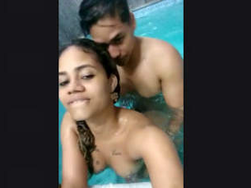 Description: A stunning Indian girl is seen in this video, dressed in a revealing outfit and working as a swinger with a foreign woman. The scene is set in a luxurious home with a lush garden and a pool.
