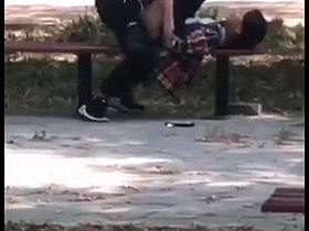 Cute Asian girl gives blowjob and gets fucked in the park
