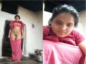 Exclusive video of a village girl in Desi attire goes nude for her lover