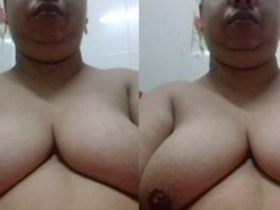 Indian babe flaunts her big boobs and pussy in the bathroom
