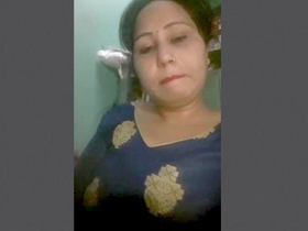 Aunty flaunts her large breasts for the store owner in a suggestive video