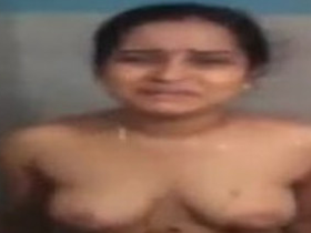 Cute desi amateur babe strips and flaunts her big boobs in bathroom