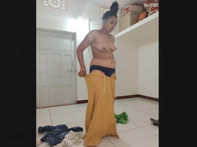 Selfie video of a Desi bhabhi undressing and dressing up after a bath