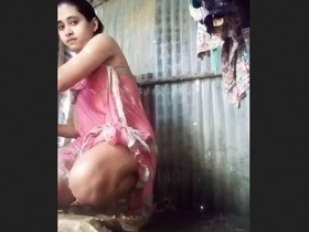 Exclusive desi girl's outdoor bathing in a village