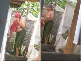 Mallu bahbhi takes a bath in the outdoors