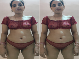 Desi aunty flaunts her big boobs and chubby belly in a naughty video