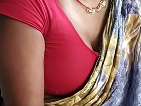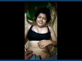 Bhabi with a pretty face and big boobs teases in a video