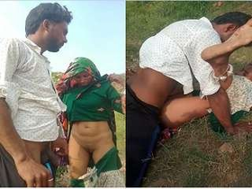 Mature bhabhi in blue sari enjoys open-field MMC sex