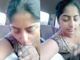 Indian girl gives her boyfriend a blowjob in a car