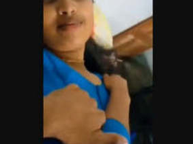 Indian wife giving oral pleasure to her husband's breasts