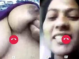Indian desi beauty with big breasts flaunts them in a video link with a friend