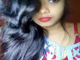 Amateur Indian lovers' webcam video features brunette babe