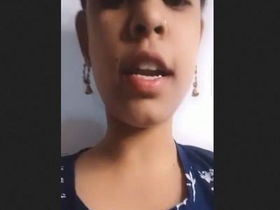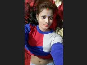 A young Indian girl displays her large breasts and intimate parts in a solo video