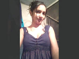 Exclusive video of cute Indian girl showing off her natural boobs