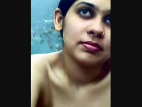 A pretty girl from the subcontinent flaunts her breasts in a video call