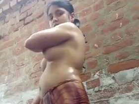 Exclusive video of a desi girl exposing her breasts and intimate parts in a village