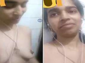 Indian girl gives herself pleasure with her fingers and breasts