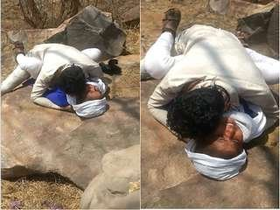 Passionate outdoor kissing and foreplay between desi lovers