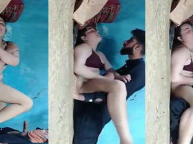 A Desi girl gives oral and has sex with a man in a village setting