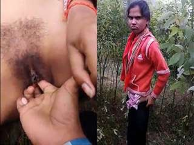 Shy girl gets her pussy licked and fingered in the jungle by her lover