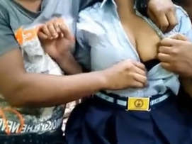 Indian guy teases a girl's small boobs on camera