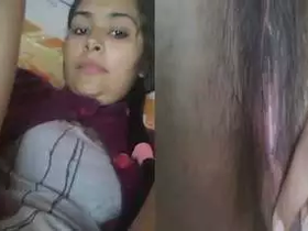 Desi girl's mms video features solo play with hairy pussy and boobs