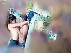 Hidden camera captures Indian gym guy having sex with a brunette in the open air