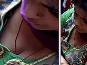 Top-down view of bubbly aunty's ample cleavage in HD video