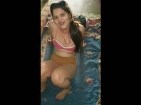 A timid Indian woman bares all and engages in intimate activities with her partner in a video message