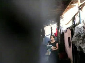 Busty wife's outdoor laundry day in HD video