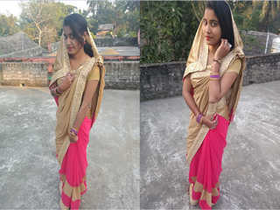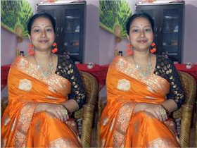 Horny aunty in a sexy sari masturbates and fucks herself with fingers
