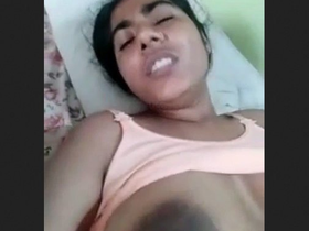 Exclusive video of a Desi wife cheating on her husband with her own boobs and pussy.