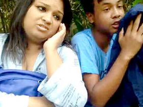 A couple enjoys outdoor sex in public with a naughty Indian girl