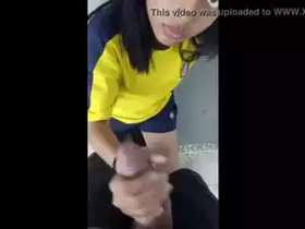 A young teenager pleasures an MMC with her hands