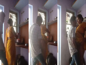 Homemade video of Indian couple kissing and touching in the kitchen