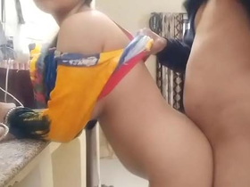Tamil aunty gets naughty in the kitchen with her saree and blouse