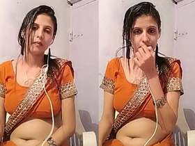 Cute bhabi shows off her belly button in a live video after a shower