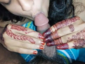 Indian babe's first time giving a blowjob to her husband