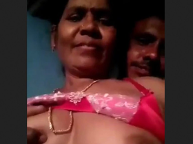 Aged Tamil aunty's big boobs in action