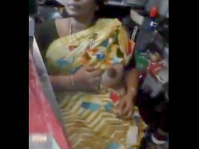 Aunty flaunts her large breasts for the store owner in a suggestive video