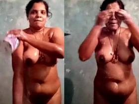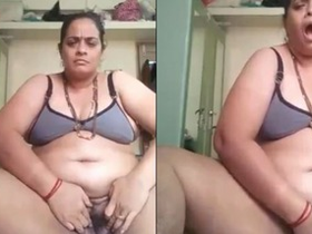 Mature Tamil auntie enjoys solo playtime with her big boobs