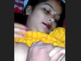 Natural boobs and shaved pussy of a Dehati tribal wife in a solo video