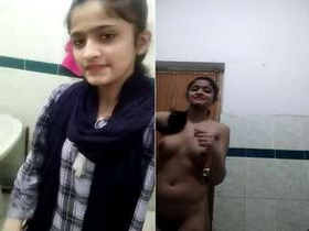 A cute Indian girl in the bathroom, showing off her body