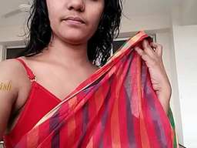 Indian wife undressing and changing clothes in front of camera