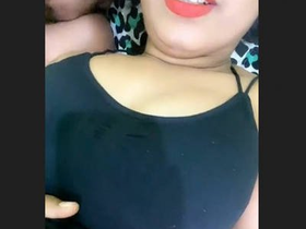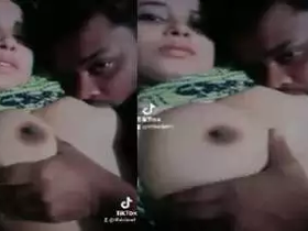 Indian babe gives oral pleasure to her partner's breasts