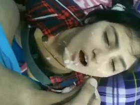 Hot Indian babe Adrian Maya receives a facial after giving a blowjob